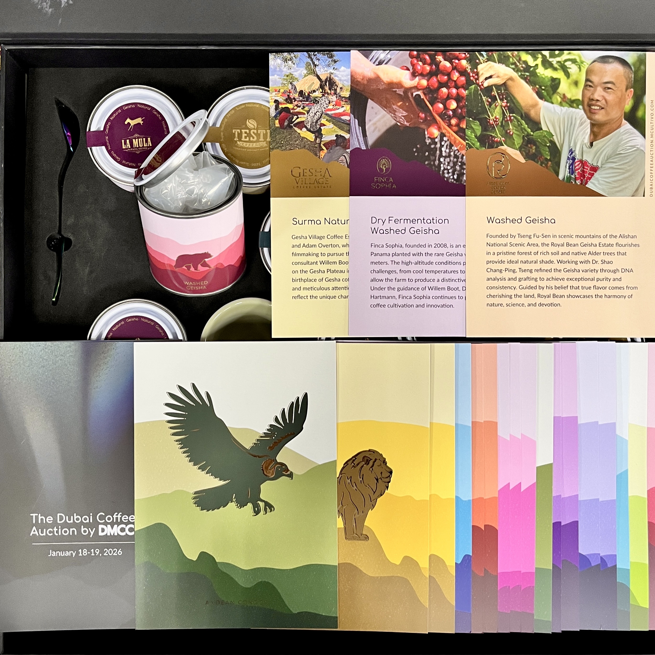 我們取得了 2026 DMCC(杜拜多種商品貿易中心)全數 21 支決選批次樣品,包含代表台灣出賽的 豆御香藝伎莊園。