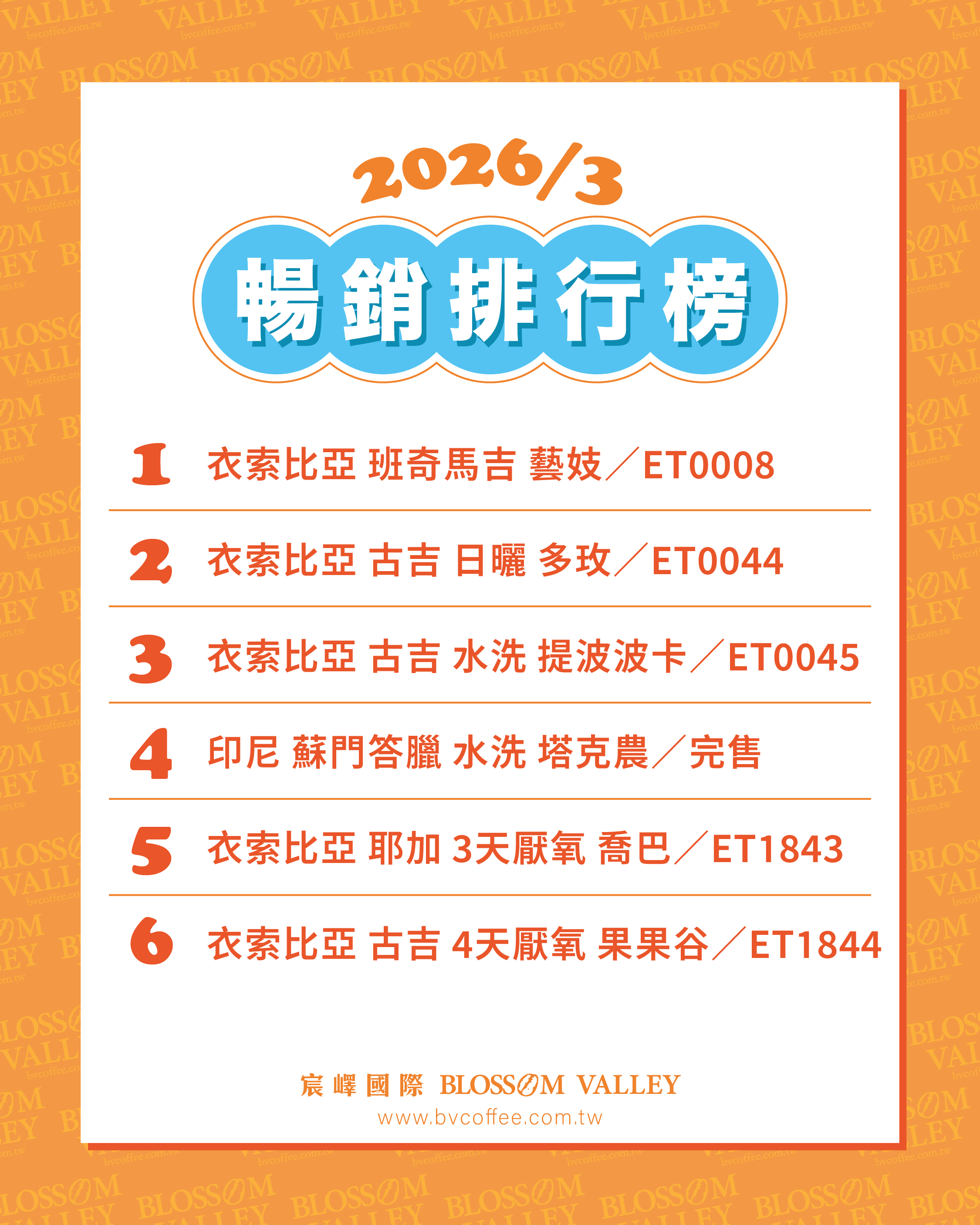 歡迎參考3月精品生豆暢銷排行榜提供大家參考