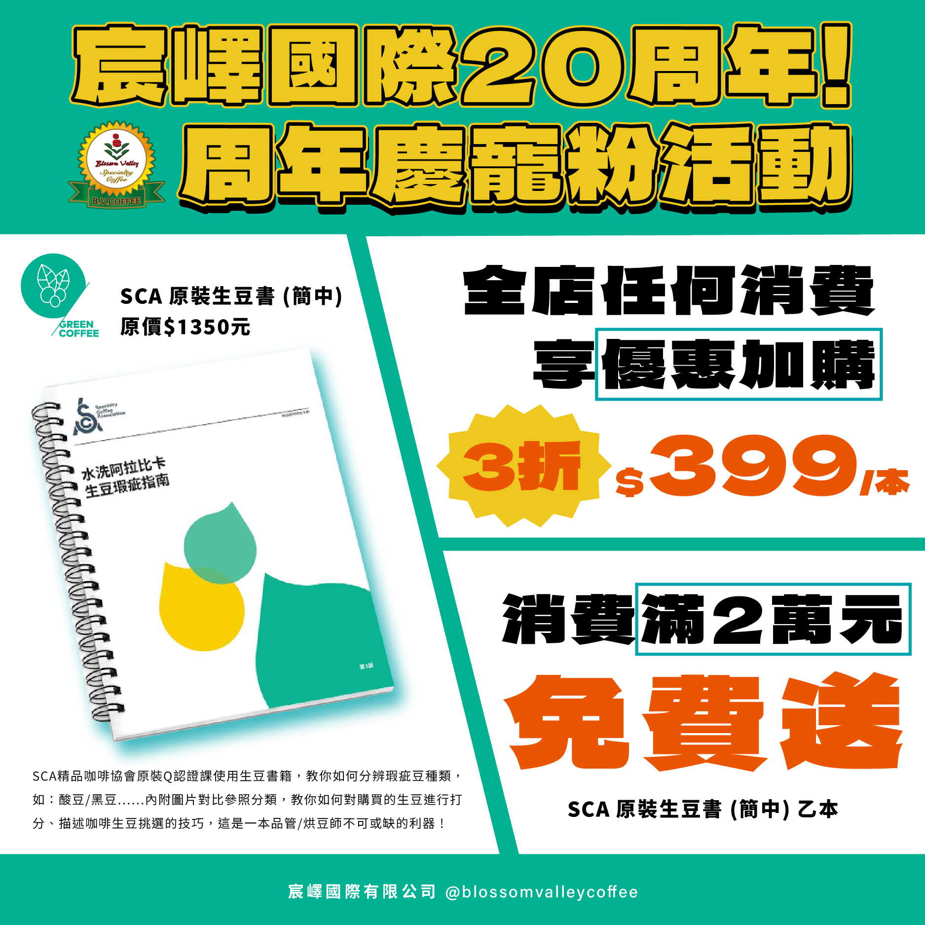 ⓶ 全店單筆消費滿𝟮萬元 » 免費送 SCA原裝生豆書 乙本